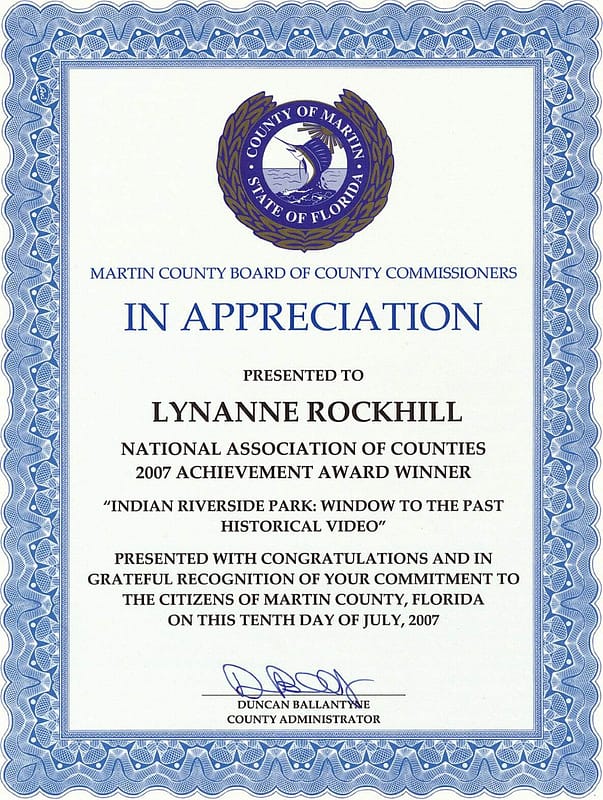 2007 Achievement Award for Indian Riverside Park Historical Documentary Video