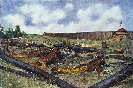 For six hours the assault increased but as the day advanced, the Indians grew weary of their unsuccessful efforts. Their combativeness eventually lessened and died away, and the garrison was left in peace; however, from time to time, a solitary shot or a lone whoop was heard from a lingering Indian. The garrison had five wounded and the Indians a small loss.